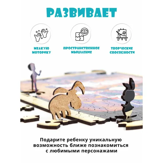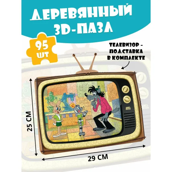 Деревянные фигурные пазлы с любимым советским мультфильмом станут отличным подарком для детей. Ведь каждый набор серии представляет собой картинку в «телевизоре», которая состоит из множества уникальных деталей – от геометрических фигур до животных и персонажей.