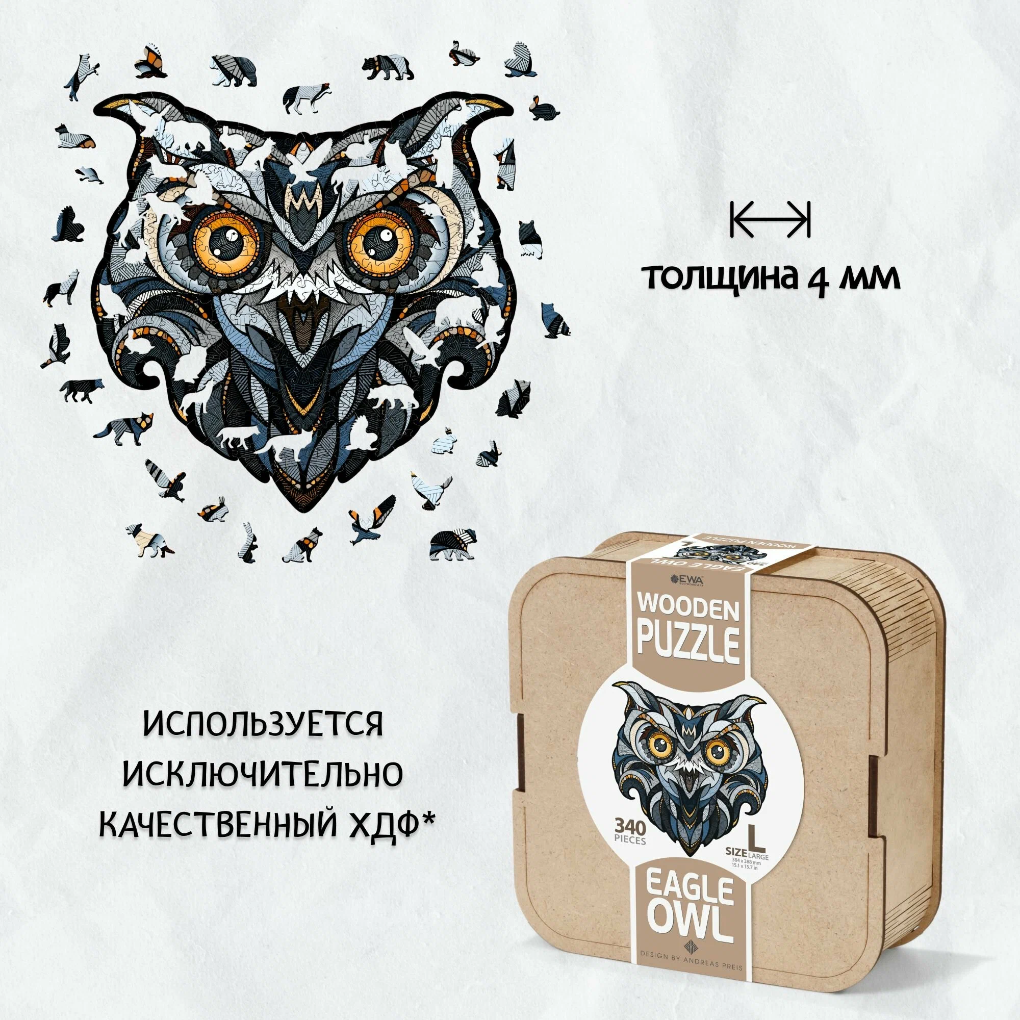 Деревянный пазл «Филин» большого размера 39x39 см – это захватывающий способ провести время с друзьями и семьей.