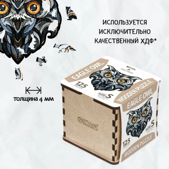 Ewa Пазл деревянный фигурный Филин S 20x20см