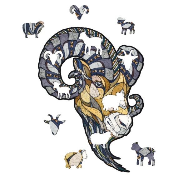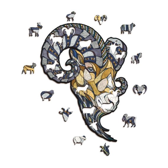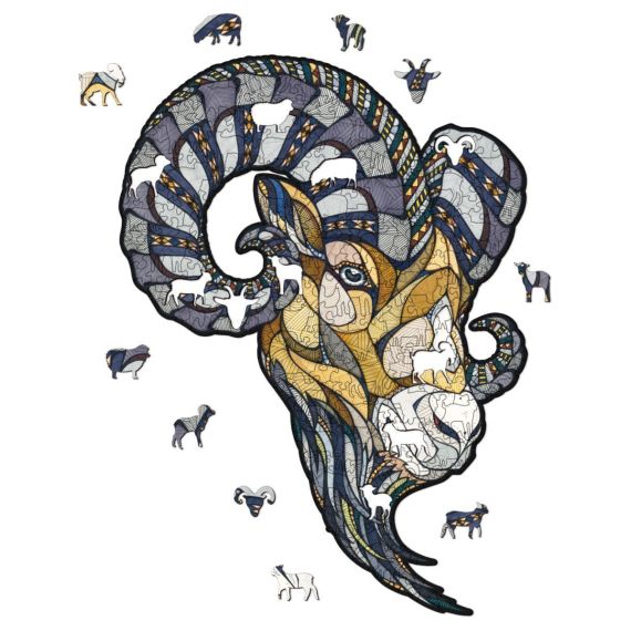 Деревянный пазл для детей и взрослых, фигурный пазл с уникальными деталями Eco Wood Art "Горный Баран" размера S - это настоящая головоломка, ваша ловкость может пригодиться в сборке. Пазл изготовлен по оригинальной иллюстрации знаменитого художника Андреаса Прайса.