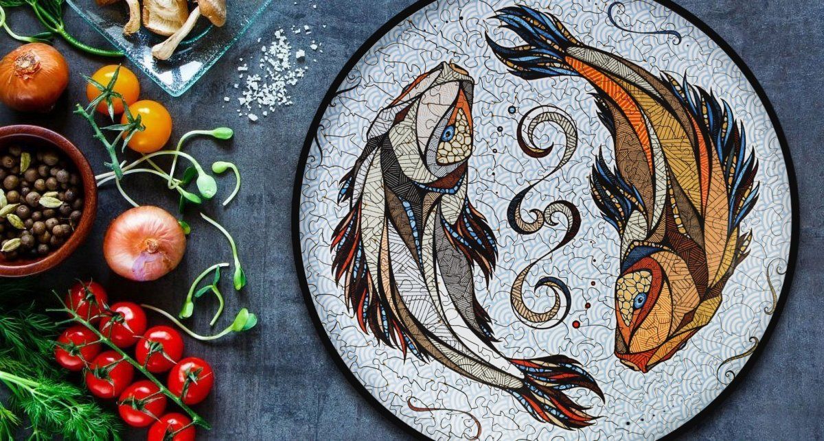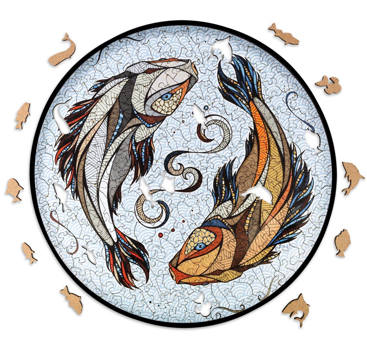 Деревянный пазл для детей и взрослых, фигурный пазл с уникальными деталями Eco Wood Art "Рыбы Карпы Кои" размера L - это настоящая головоломка, ваша ловкость может пригодиться в сборке.