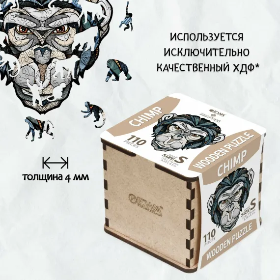 Деревянный пазл «Шимпанзе» 22x22 см – это захватывающий способ провести время с друзьями и семьей.