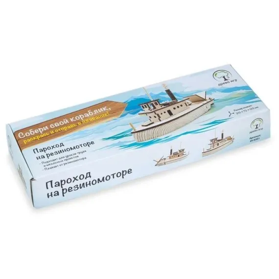 Подарите своему ребенку возможность почувствовать себя настоящим капитаном с деревянным конструктором "Кораблик Пароход на резиномоторе" и откройте для него мир бесконечных водных приключений!