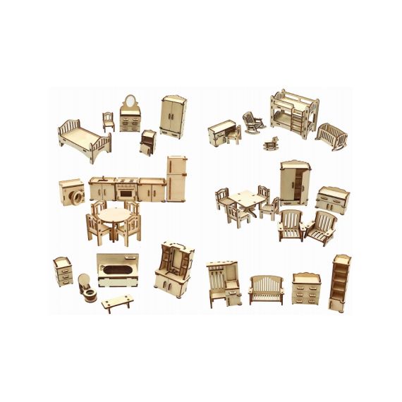 ХэппиДом Набор кукольной мебели из дерева 6 в 1