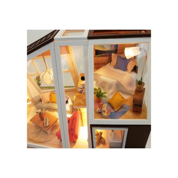 Румбокс Интерьерный конструктор Hobby Day DIY MiniHouse, от официального дистрибьютора, полностью русифицированный. Для успешной сборки необходима русскоязычная инструкция. Проверяйте наличие логотипа HOBBY DAY на коробках. Остерегайтесь подделок! Румбокс - это готовый набор для творчества, внутри которого Вы найдете все необходимое, чтобы воссоздать собственными руками кукольный домик высокой детализации. Все детали выполнены из безопасных материалов и необыкновенно реалистичны. Diy Mini House станет действительно прекрасным подарком. Это интересное времяпрепровождение для детей от 10 до 14 лет. Собранный румбокс может стать как необычным элементом декора с подсветкой, так и домиком для кукол размером 5-7 см. Материал конструктора: дерево, текстиль, пластик, металл. Комплектация: детали изделия, русская инструкция, клей, светодиоды (комплект для освещения с выключателем). Обращаем внимание, что пылезащитный купол не входит в состав данного набора.