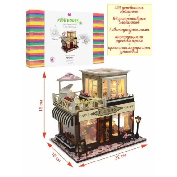 Румбокс - это готовый интерьерный конструктор (инструкция на русском языке!) для творчества от официального дистрибьютера HOBBY DAY. Внутри набора Вы найдете все необходимое, чтобы воссоздать своими руками одно из самых известных кафе в мире. Для Вашего удобства разработана новая пошаговая иллюстрированная инструкция на русском языке, проработанная до мельчайших подробностей. Во всех наборах новый усиленный клей без запаха. Светодиодная LED-подсветка. Все детали выполнены из безопасных материалов и необыкновенно реалистичны. Это занимательное увлечение помогает не только интересно проводить время, но и способствует развитию творческих способностей, пространственного мышления, координации, усидчивости, совместному времяпрепровождению детей и их родителей. Набор подходит для детей в возрасте от 10 лет. Собранная модель может стать домиком для куколок 5-7 см, необычным предметом интерьера или ночником. Румбоксы с разнообразными сюжетами идеально подойдут в качестве подарка на Новый год / день рождения / ребенку / дочери / сыну / мальчику / девочке / маме / себе / родственникам / друзьям.