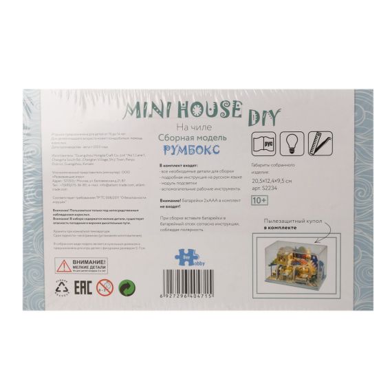 Румбокс - это готовый набор для творчества, внутри которого Вы найдете все необходимое, чтобы воссоздать собственными руками кукольный интерьер в миниатюре. Все детали выполнены из безопасных материалов и необыкновенно реалистичны. Интерьерный конструктор станет действительно прекрасным подарком. Набор подходит для детей в возрасте от 10 до 14 лет, для детей более младшего возраста возможно понадобится помощь взрослого человека. Собранный румбокс может стать как необычным элементом декора, так и домиком для кукол размером 5-7 см. Набор для творчества, внутри которого находится все необходимое для воссоздания интерьера в миниатюре собственными руками.