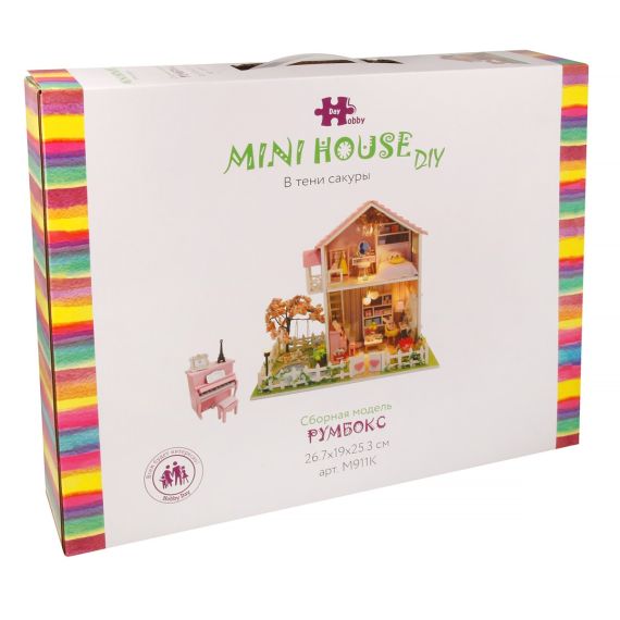 Румбокс Интерьерный конструктор Hobby Day DIY MiniHouse, от официального дистрибьютора, полностью русифицированный. Для успешной сборки необходима русскоязычная инструкция. Проверяйте наличие логотипа HOBBY DAY на коробках. Остерегайтесь подделок! Румбокс - это готовый набор для творчества, внутри которого Вы найдете все необходимое, чтобы воссоздать собственными руками кукольный домик высокой детализации. Все детали выполнены из безопасных материалов и необыкновенно реалистичны. Diy Mini House станет действительно прекрасным подарком. Это интересное времяпрепровождение для детей от 10 до 14 лет. Собранный румбокс может стать как необычным элементом декора с подсветкой, так и домиком для кукол размером 5-7 см. Материал конструктора: дерево, текстиль, пластик, металл. Комплектация: детали изделия, русская инструкция, клей, светодиоды (комплект для освещения с выключателем). Обращаем внимание, что пылезащитный купол не входит в состав данного набора.