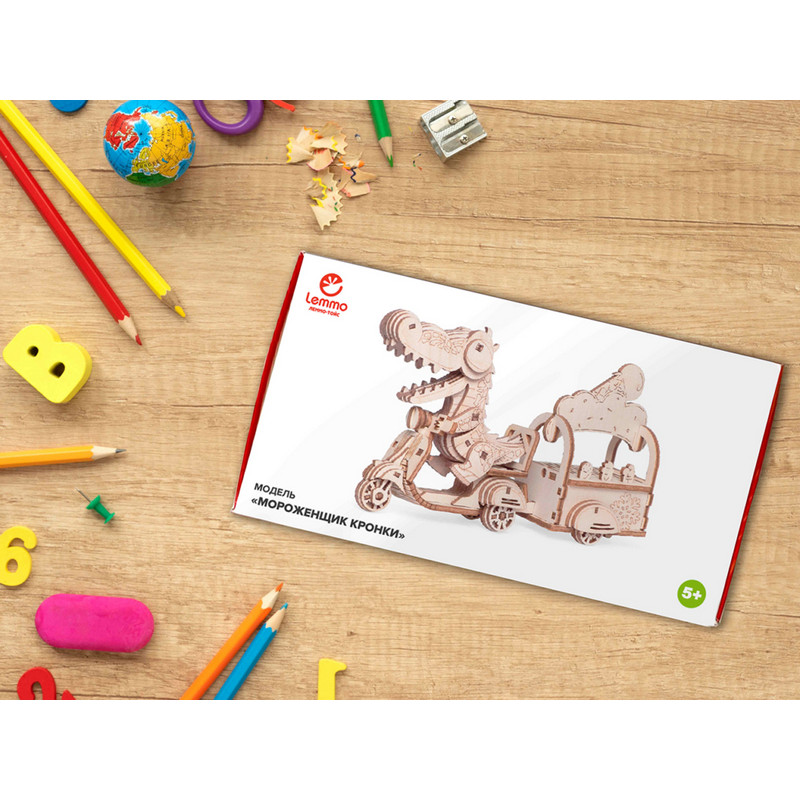 Деревянный конструктор Lemmo Мороженщик Кронки - это сборная модель, которая станет отличным подарком для детей от 5 до 14 лет.