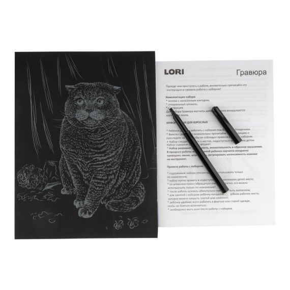 Комплектация: Основа с контуром рисунка, штихель, инструкция.