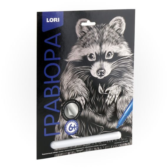 Lori Гравюра большая с эффектом серебра Классика Пушистый енот
