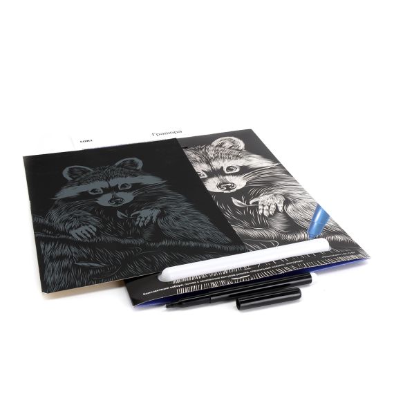 Уникальная коллекция гравюр Классика завораживает и притягивает взгляд. Изображения животных выполнены на золотой и серебряной основе размером 18х24 см, с мягкими линиями и контурами. Рисовать одно удовольствие, необходимо лишь взять штихель – особый скребок, входящий в состав набора, и процарапать рисунок гравюры.