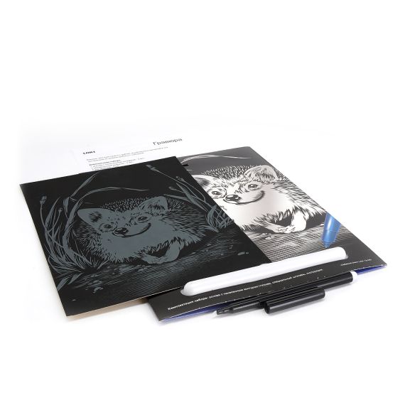 Уникальная коллекция гравюр Классика завораживает и притягивает взгляд. Изображения животных выполнены на золотой и серебряной основе размером 18х24 см, с мягкими линиями и контурами. Рисовать одно удовольствие, необходимо лишь взять штихель – особый скребок, входящий в состав набора, и процарапать рисунок гравюры.