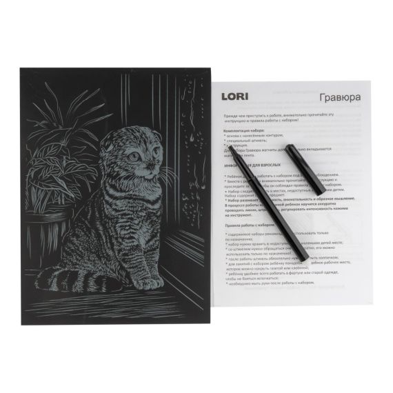 Комплектация: Основа с контуром рисунка, штихель, инструкция.