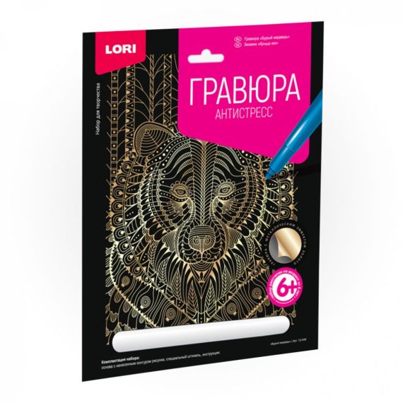 Lori Гравюра большая с эффектом золота Антистресс Бурый медведь