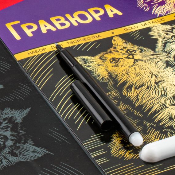 Гравюра представляет собой многослойное панно, покрытое чёрной краской, на которое нанесён контур рисунка. Техника создания гравюры увлекательна и достаточно проста. Необходимо лишь взять штихель – особый скребок, входящий в состав набора, и процарапать рисунок гравюры. Работа с гравюрой развивает усидчивость, внимательность и образное мышление.