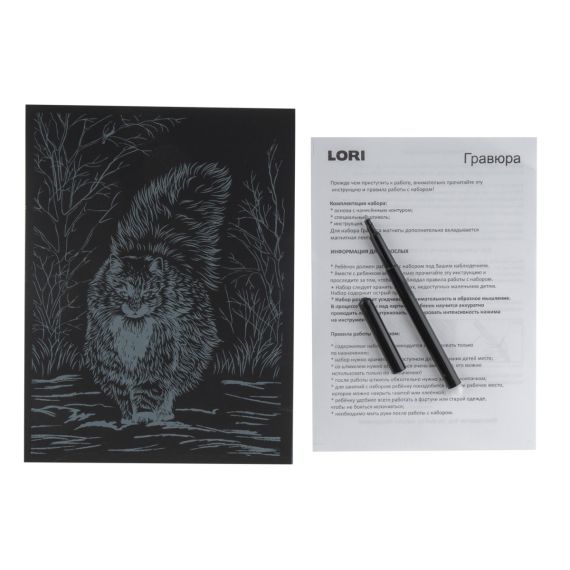 Комплектация: Основа с контуром рисунка, штихель, инструкция.