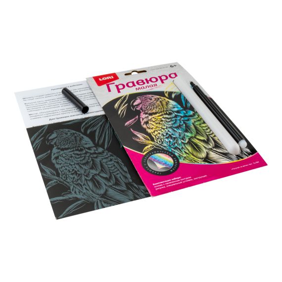 Гравюра представляет собой многослойное панно, покрытое чёрной краской, на которое нанесён контур рисунка. Техника создания гравюры увлекательна и достаточно проста. Необходимо лишь взять штихель – особый скребок, входящий в состав набора, и процарапать рисунок гравюры. Работа с гравюрой развивает усидчивость, внимательность и образное мышление.