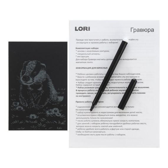 Гравюра малая серии «Детёныши» — это самая милая коллекция, которая очень нравится детям. Из-за детальной проработки сюжетов животные выглядят, как настоящие. Готовый результат будет восхищать и радовать. Необходимо лишь взять штихель – особый скребок, входящий в состав набора, и процарапать рисунок гравюры.