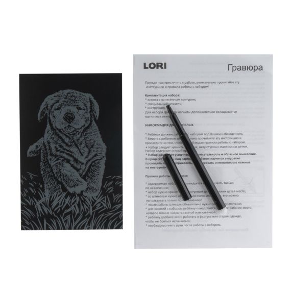 Комплектация: Основа с нанесенным контуром, специальный штихель, инструкция.