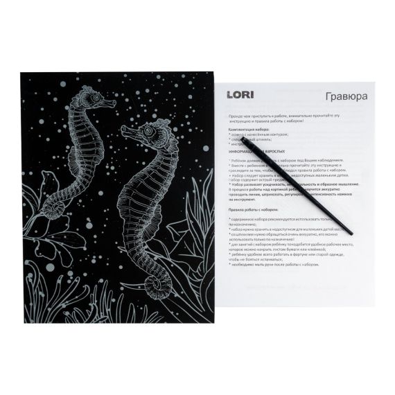 Комплектация: Основа с нанесенным контуром, специальный штихель, инструкция.
