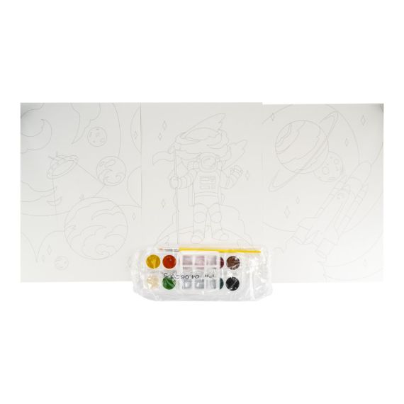 Комплектация: 3 основы с нанесённым контуром, краски, кисть, палитра, инструкция.