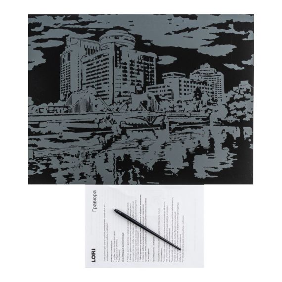 Гравюра представляет собой многослойное панно, покрытое чёрной краской, на которое нанесён контур рисунка. Техника создания гравюры увлекательна и достаточно проста. Необходимо лишь взять штихель – особый скребок, входящий в состав набора, и процарапать рисунок гравюры. Работа с гравюрой развивает усидчивость, внимательность и образное мышление.