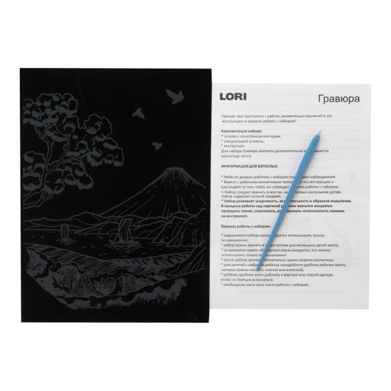 Комплектация: Основа с нанесенным контуром, специальный штихель, инструкция.