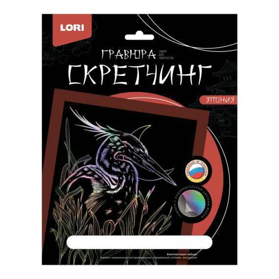Lori Скретчинг Гравюра цветная 18х24см Япония Японская цапля