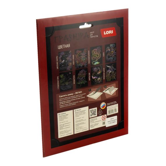 Комплектация: Основа с нанесенным контуром, специальный штихель, инструкция.