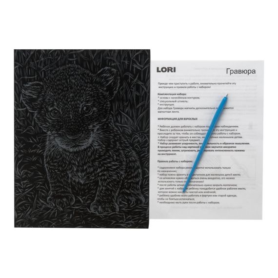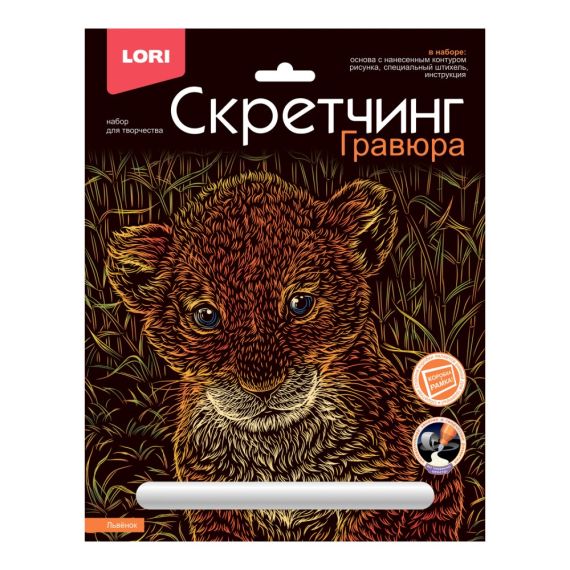 Lori Скретчинг Гравюра цветная 18х24см Животные классика Львенок
