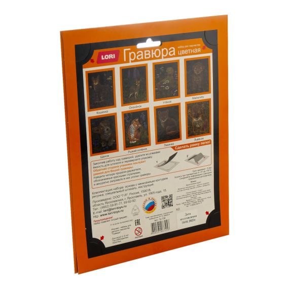 Комплектация: Основа с нанесенным контуром, специальный штихель, инструкция.