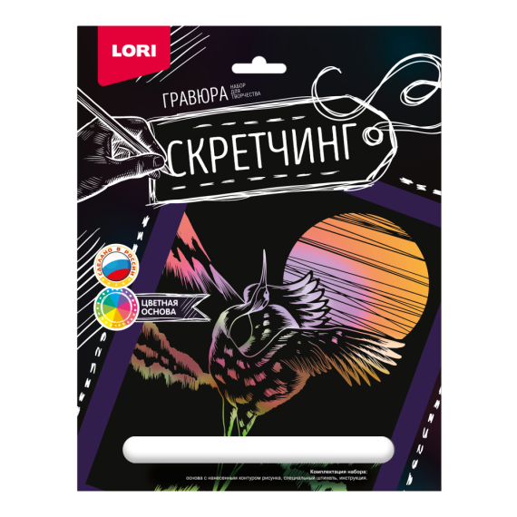 Lori Скретчинг Гравюра цветная 18х24см Животные Журавль