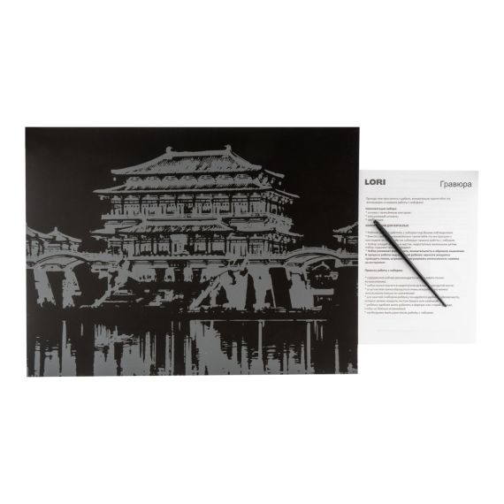 Гравюра представляет собой многослойное панно, покрытое чёрной краской, на которое нанесён контур рисунка. Техника создания гравюры увлекательна и достаточно проста. Необходимо лишь взять штихель – особый скребок, входящий в состав набора, и процарапать рисунок гравюры. Работа с гравюрой развивает усидчивость, внимательность и образное мышление.