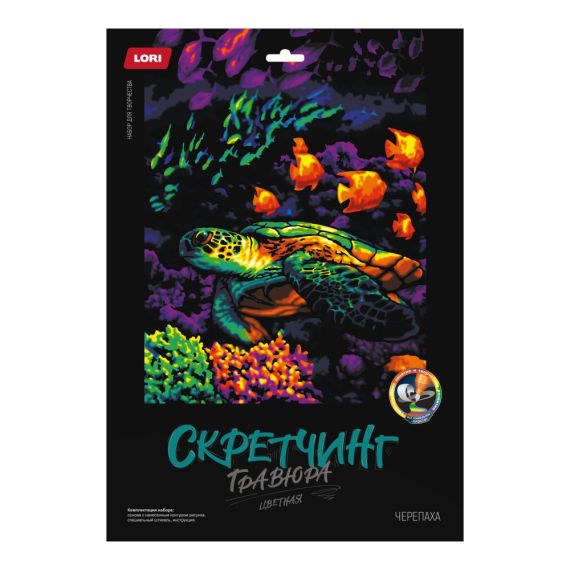 Lori Скретчинг Гравюра цветная 30х40см Неоновые животные Черепаха
