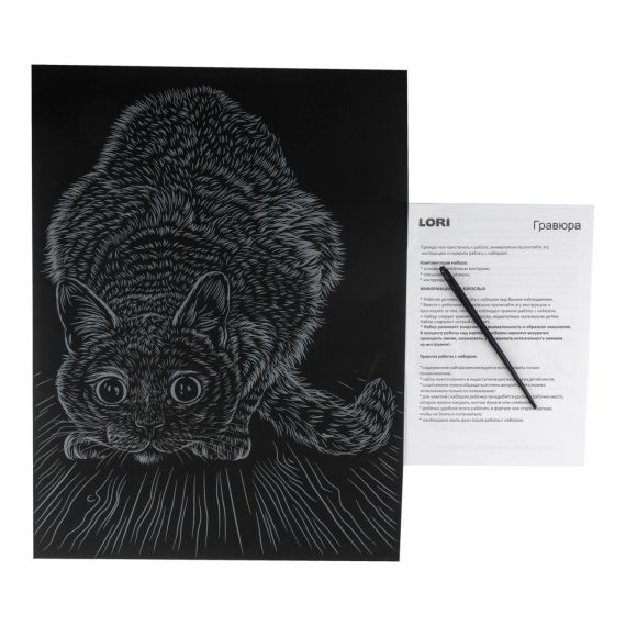 Гравюра представляет собой многослойное панно, покрытое чёрной краской, на которое нанесён контур рисунка. Техника создания гравюры увлекательна и достаточно проста. Необходимо лишь взять штихель – особый скребок, входящий в состав набора, и процарапать рисунок гравюры. Работа с гравюрой развивает усидчивость, внимательность и образное мышление.
