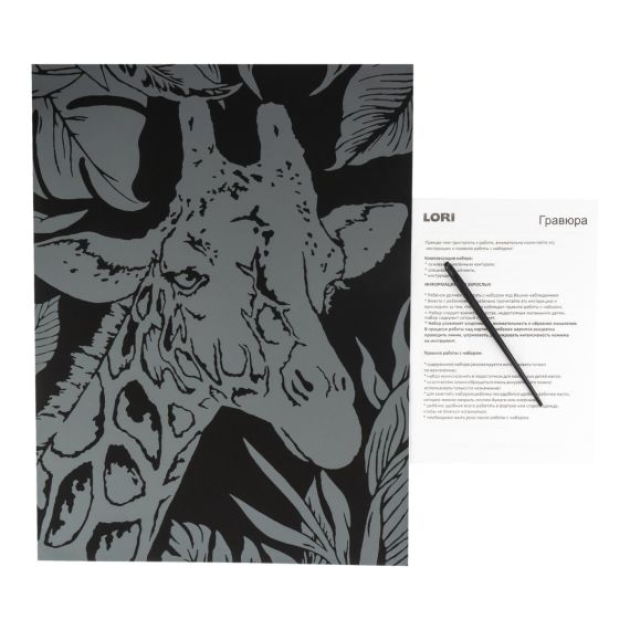 Комплектация: Основа с нанесенным контуром, специальный штихель, инструкция.