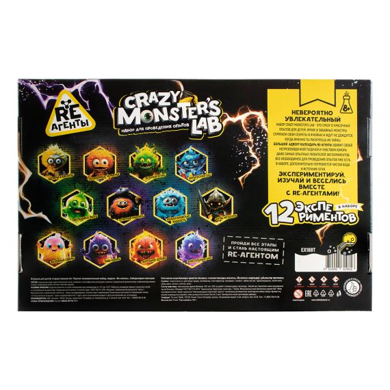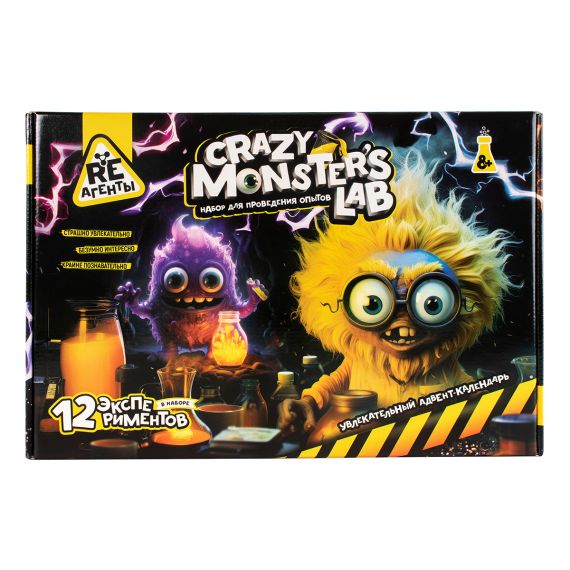 Большой подарочный набор опытов Crazy Monstr's Lab- это увлекательный АДВЕНТ-календарь с 12 опытами внутри. Каждый опыт представляется своим забавным монстром, а подробная инструкция представлена в стихотворной форме в стилистике "Вредных советов".