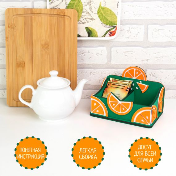 Эту оригинальную подставку для чайных пакетиков легко собрать и украсить самостоятельно, что сделает вашу кухню уютнее и организованнее.