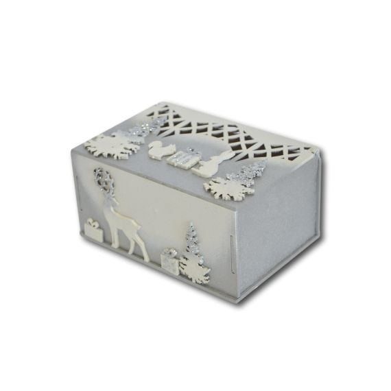 О наборе: Заготовки из МДФ легко соединяются между собой, после чего на них наносится краска с помощью губки. Далее шкатулка украшается элементами декора и блестками. Создаст атмосферу праздника и послужит прекрасным новогодним подарком!