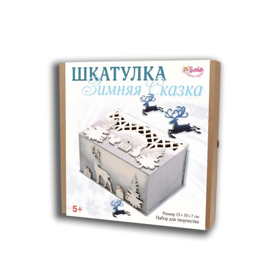Набор для творчества Шкатулка "Зимняя сказка" подходит для детей школьного возраста. Он поставляется в полностью разобранном виде, но, проявив немного усидчивости, ребенок сможет создать практичную, аккуратную шкатулку небольшого размера.