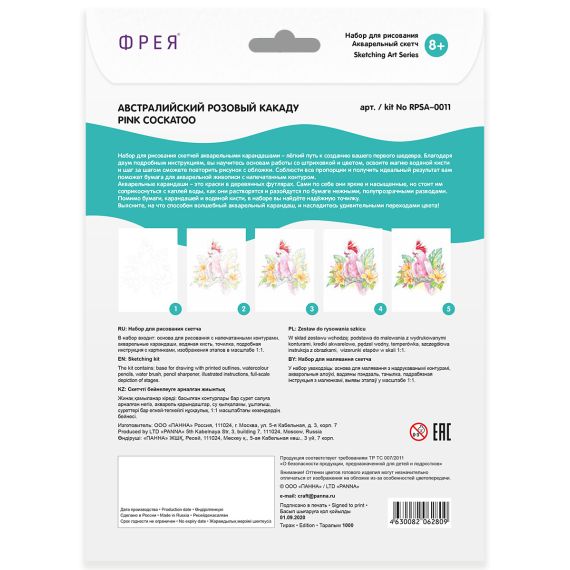 Фрея Скетч для раскрашивания акварельными карандашами 29.7х21см Австралийский розовый какаду