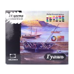 Набор художественных гуашевых красок Малевичъ различных оттенков для создания нежных рисунков и скетчей. Водорастворимая, комфортная для работы гуашь с приятной кремовой консистенцией и повышенной концентрацией пигмента. Высокая кроющая способность позволяет наносить четкие мелкие непрозрачные...