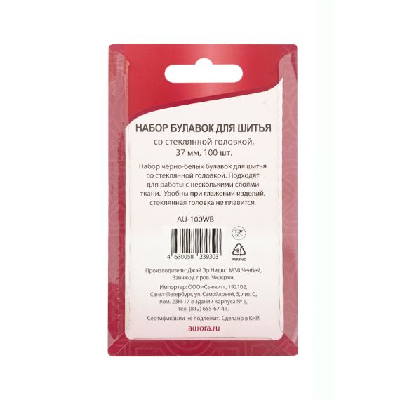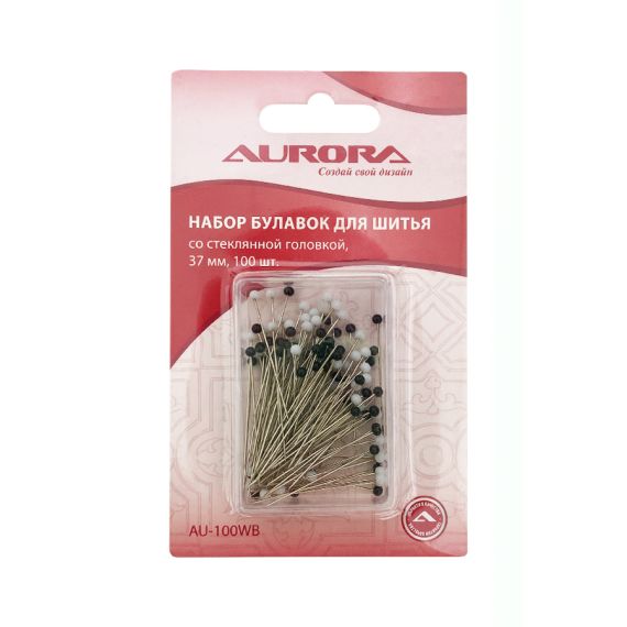 Aurora Булавки портновские со стеклянной головкой Черно-белые 100шт