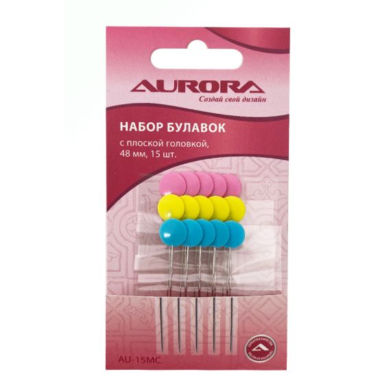 Aurora Набор булавок круглые 15шт 48мм разноцветные