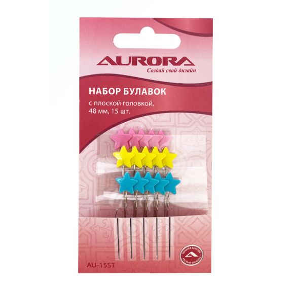 Aurora Набор булавок звёздочка 15шт 48мм разноцветные