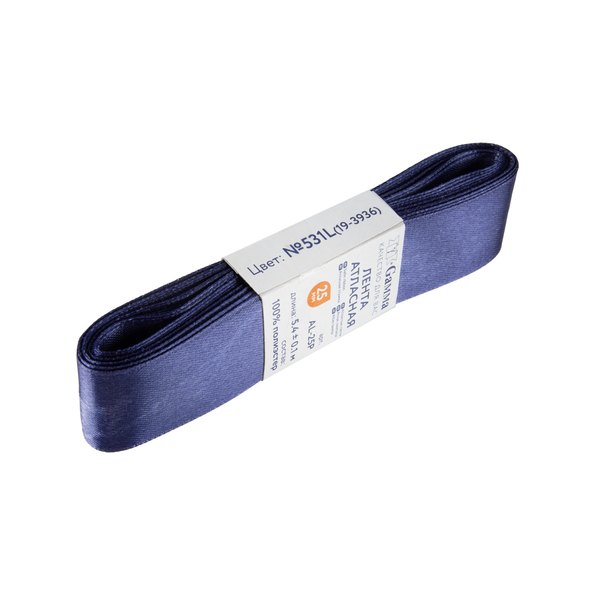 Gamma Лента атласная AL-25P 25мм 5.4м № №531L(19-3936) Сине-фиолетовый