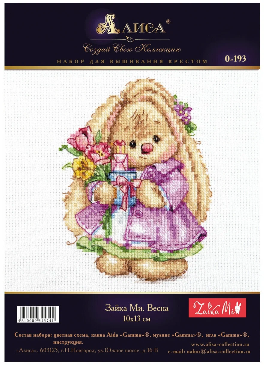 Набор для вышивания "Зайка-Ми. Весна", 10х13 см. Это замечательное приобретение для всех девочек и женщин, которые увлекаются творчеством и обожают пробовать что-то новое. Если вы давно занимаетесь вышивкой или же только собираетесь осваивать это хобби - приобретайте наш комплект и создавайте шедевры своими руками! В состав набора входит канва без нанесенного рисунка Aida "Gamma" из 100 % хлопка. Материал достаточно плотный и жесткий, край изделия не пушится и сохраняет свою целостность - рукоделию не требуются пяльца, поэтому можно вполне обойтись и без них. Нити мулине Гамма отличаются особой прочностью и ярким насыщенным цветом, а игла достаточно острая и тонкая, что позволит ей без труда попасть в отверстие и создать идеальные крестики в канве Аида. Также в наборе есть цветная символьная схема и инструкция на русском языке.