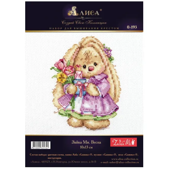 Алиса Набор для вышивания крестом 10х13см 0-193 Зайка Ми Весна