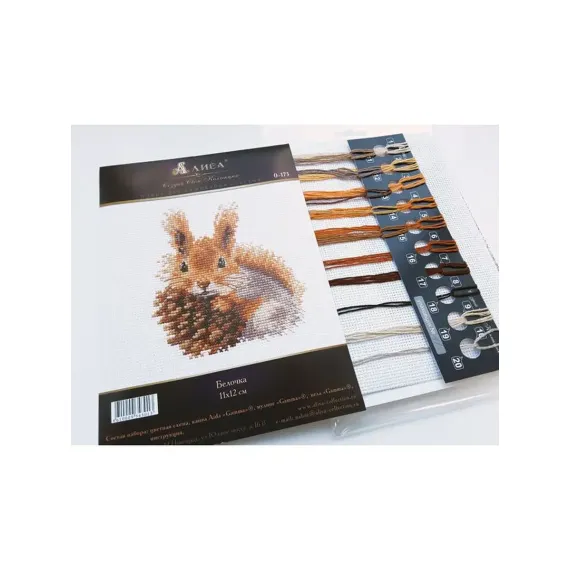 Набор для вышивания "Белочка". Размер готовой вышивки 11х12 см -15 цветов. В набор входит: Канва Aida 14 белая, Мулине Гамма 100% хлопок, разобранное на органайзере, 2 иглы, инструкция, символьная схема со слабой цветовой тонировкой.